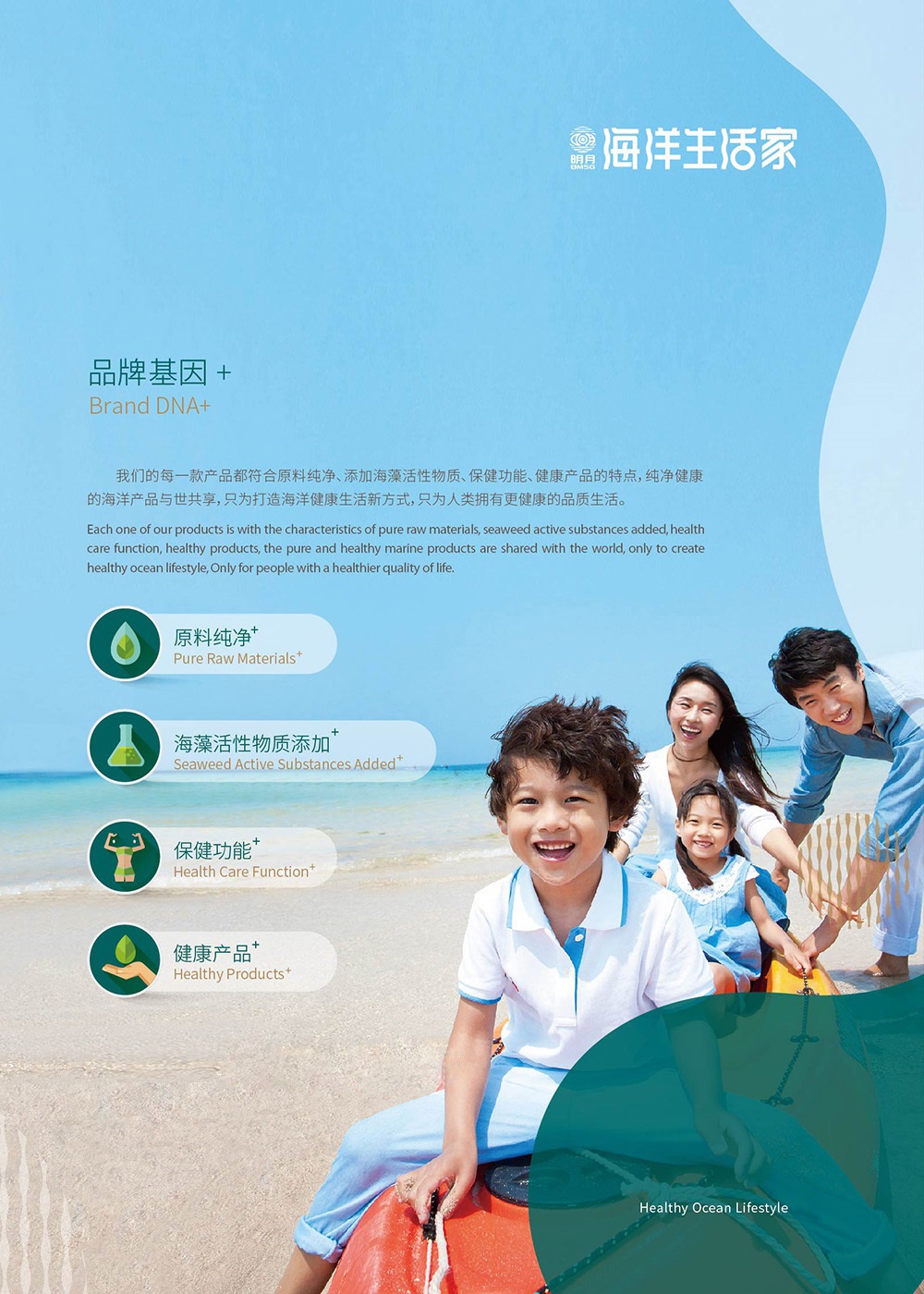 明月的核心競(jìng)爭(zhēng)力是海藻產(chǎn)品,它的高品質(zhì)完全可以承載人們對(duì)于純凈的期望和要求,所以,海洋健康生活新方式的核心感性載體即是純凈。