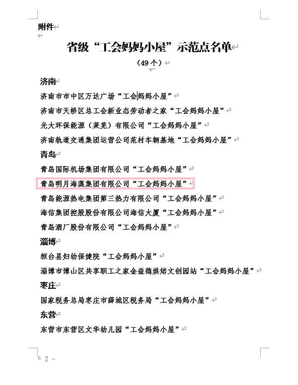 明月海藻集團(tuán) “工會(huì)媽媽小屋”獲評(píng)省級(jí)示范點(diǎn)