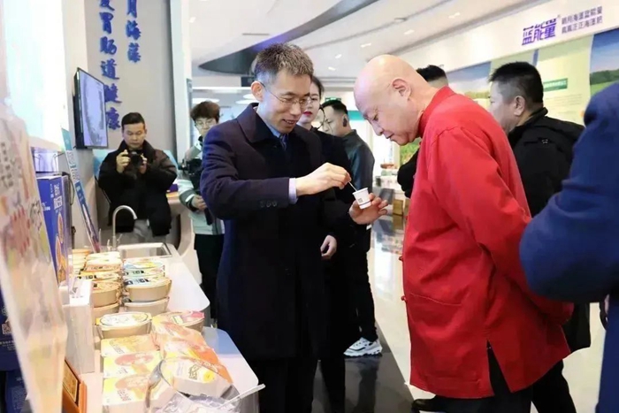 明月海藻五彩文旅集團(tuán)副總裁李可昌陪同嘉賓參觀海藻世界。