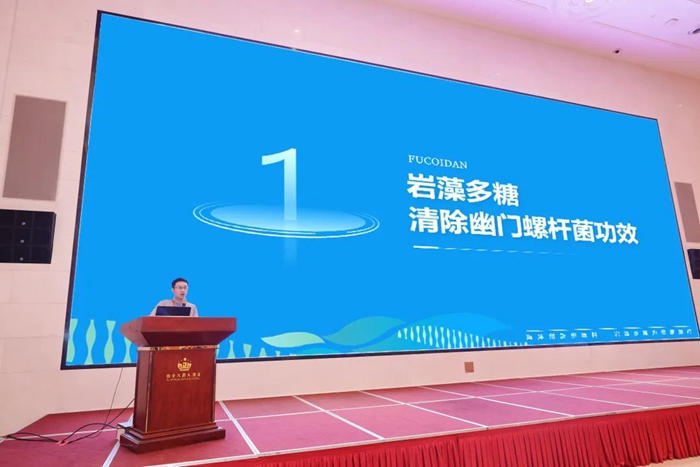 此次大會(huì),明月海藻生物健康科技集團(tuán)副總裁、海藻活性物質(zhì)國(guó)家重點(diǎn)實(shí)驗(yàn)室-巖藻多糖研究室主任孫占一應(yīng)邀參加未來(lái)功能食品專場(chǎng)演講,分享《巖藻多糖 保胃健康 腸享生活》。從巖藻多糖在胃腸道健康領(lǐng)域的功效研究著手,講述巖藻多糖帶來(lái)一種全新的胃腸道健康解決方案,特別是備受關(guān)注的去除幽門螺桿菌解決方案,為客戶提供安心且高效的清幽新選擇。