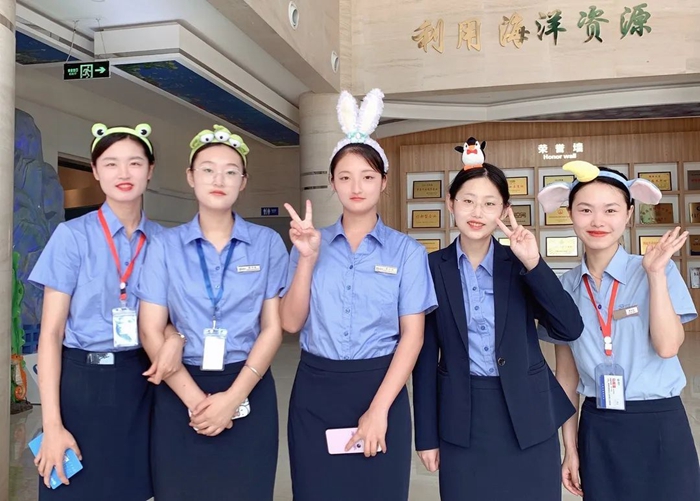 微笑服務(wù)、溫暖親切,她們的服務(wù)有溫度。春去秋來,人來送往,在海藻世界,她們每天都會看到不一樣的臉龐。但是,唯一不變的是講解人員每天親切的笑容和溫暖的問候。