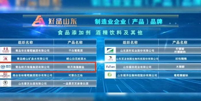 “明月海藻酸鹽”入選“好品山東”制造業(yè)企業(yè)(產(chǎn)品)品牌