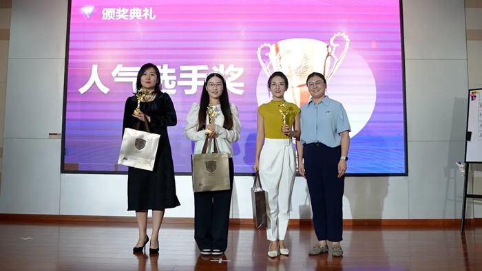 明月愛熙總經(jīng)理冷雪(右一)為人氣選手獎頒獎