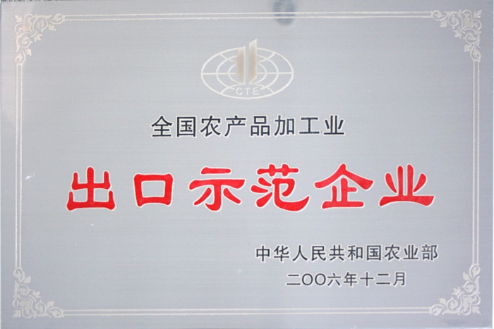2006年12 月,國家農(nóng)業(yè)部授予明月海藻集團(tuán)“全國農(nóng)產(chǎn)品加工業(yè)出口示范企業(yè)”稱號