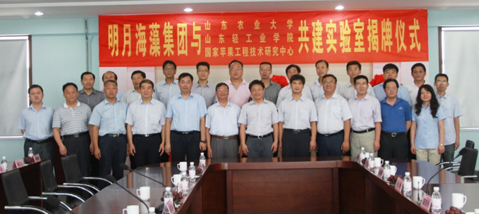 2012年7月26日,明月海藻集團與山東農(nóng)業(yè)大字、山東輕工業(yè)學(xué)院(齊魯工業(yè)大學(xué))、國家蘋果工程技術(shù)研究中心共建實驗室揭牌