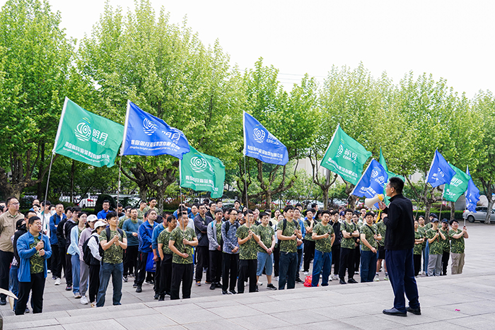 臨出發(fā)前,大家?guī)е簱P的斗志和燦爛的笑容,在明月海藻集團辦公樓整裝待發(fā)。