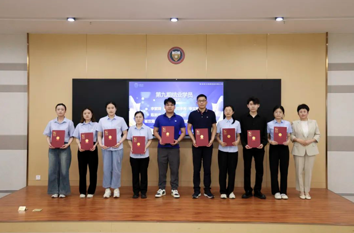 集團(tuán)總裁助理、人力資源部總監(jiān)尹麗莉?yàn)閷W(xué)員頒發(fā)第九期學(xué)員結(jié)業(yè)證書。