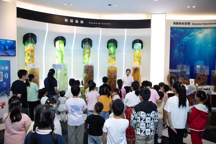 與此同時(shí),孩子們?cè)谥v解員的陪伴下,參觀了中國(guó)海藻科技館與海藻部落,通過互動(dòng)體驗(yàn)、科普講解等形式,近距離感受了海藻的神奇魅力與廣泛應(yīng)用。那些色彩斑斕、形態(tài)各異的海藻標(biāo)本,以及通過高科技手段展現(xiàn)的海藻生長(zhǎng)過程,讓孩子們瞪大了眼睛,滿是好奇與驚嘆,對(duì)海洋的奧秘充滿了無限向往。