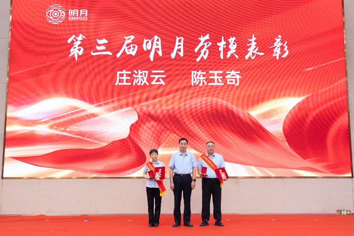 集團工會主席楊曉菁宣讀《中共青島明月海藻集團有限公司委員會、青島明月海藻集團有限公司工會委員會關于表彰第三屆明月勞動模范的決定》。勞模主題視頻《平凡之路,匠心筑夢》、《堅守如磐,微光成炬》生動展現(xiàn)了莊淑云、陳玉奇兩位第三屆明月勞模數(shù)十年如一日的默默堅守,以點滴微光匯聚創(chuàng)新力量,在平凡崗位上追求極致的“工匠精神”。陳玉奇代表勞模發(fā)言,表達了將繼續(xù)扎根崗位、銳意創(chuàng)新、甘于奉獻,為集團“聚勢謀遠”貢獻全部力量的堅定決心。
