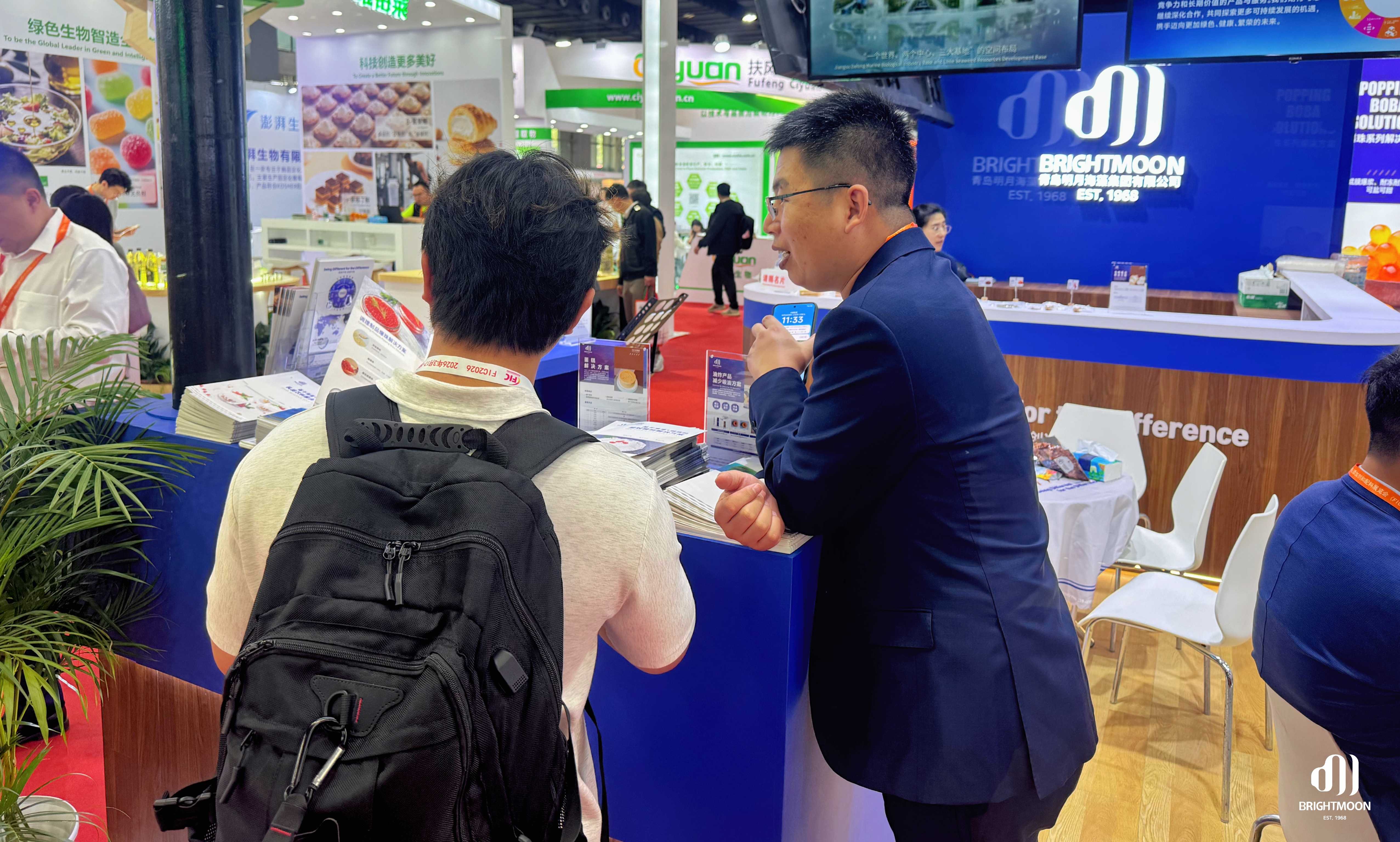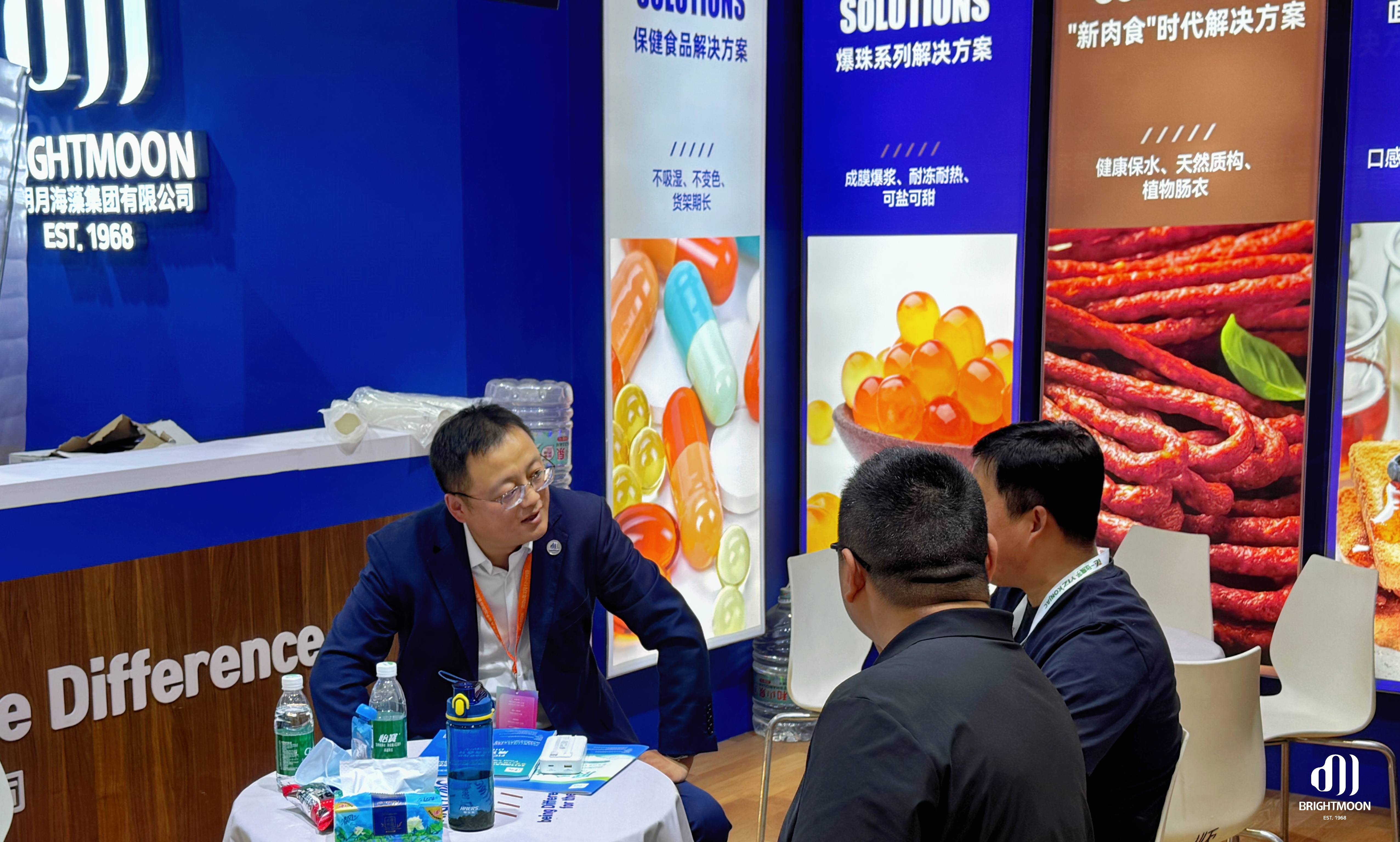 展會期間,明月展位始終熱度不減。專業(yè)團隊以產品展示、技術交流和場景化示范,向現(xiàn)場觀眾集中呈現(xiàn)“海藻功能原料×食品創(chuàng)新”的前沿趨勢,吸引了大量行業(yè)伙伴駐足探討,共同尋找下一代食品創(chuàng)新方向。
