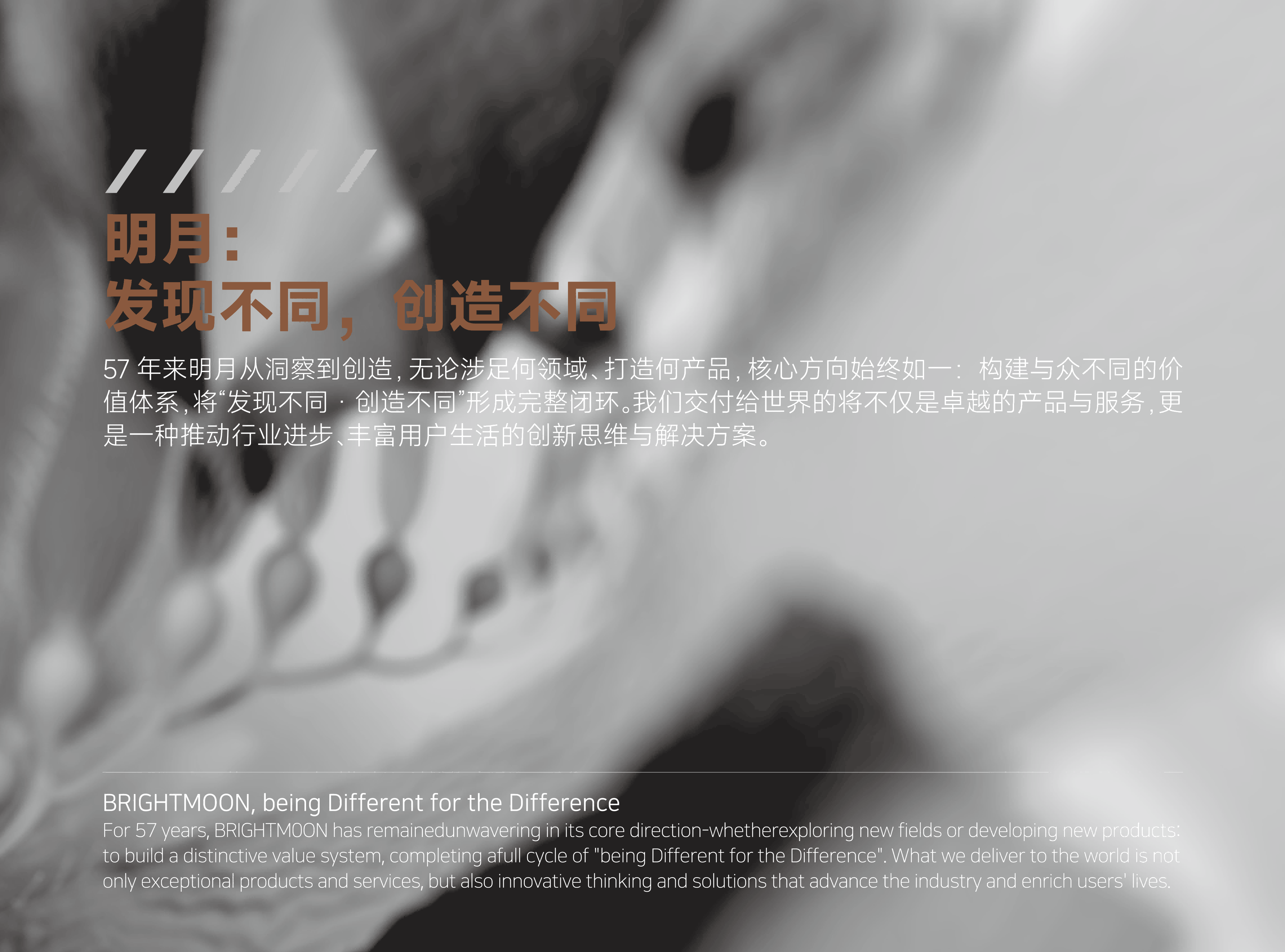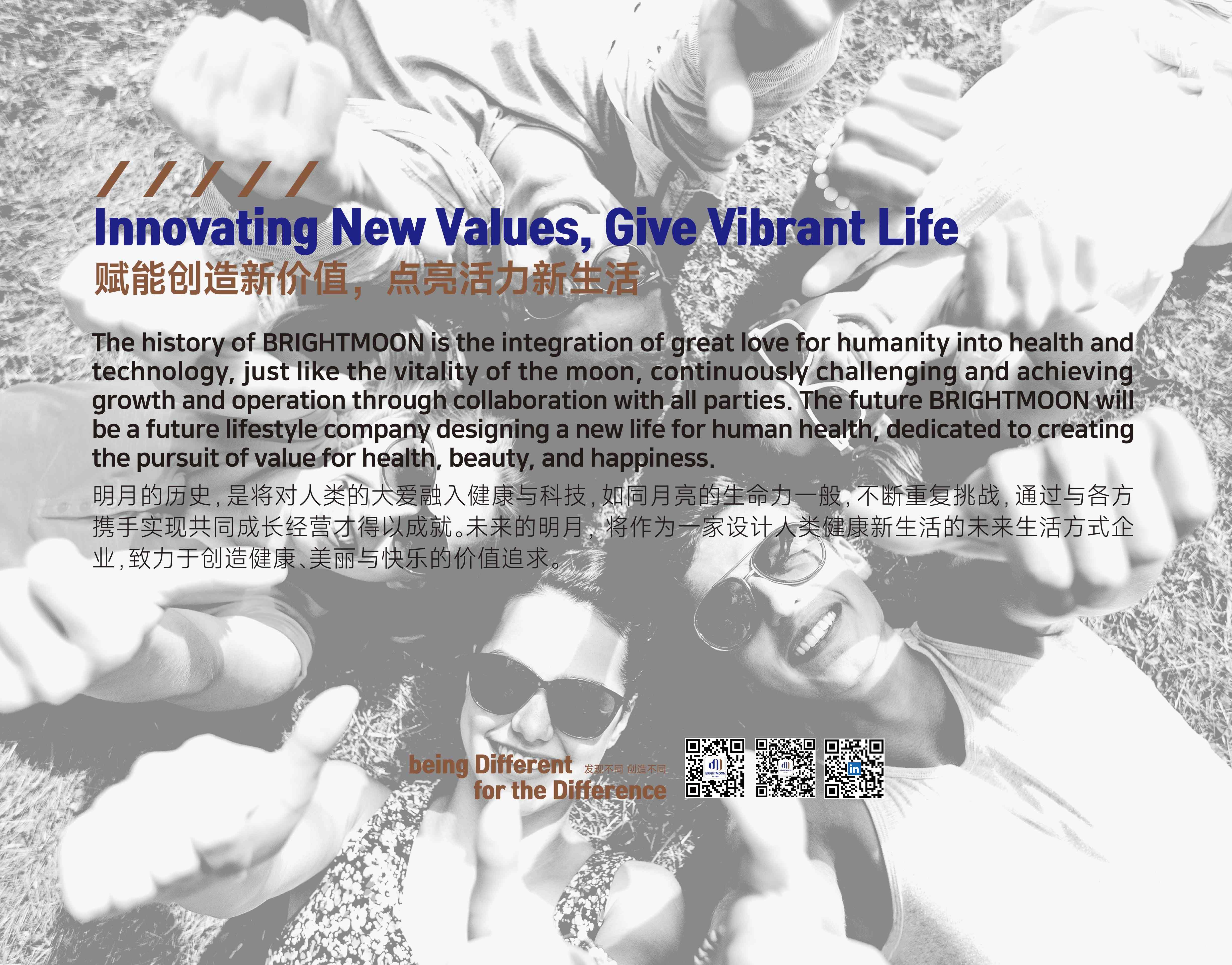 明月始終堅(jiān)信,企業(yè)的成長不僅源于技術(shù)與產(chǎn)品,更源于文化的力量。58年的發(fā)展歷程中,我們不斷傳承與創(chuàng)新,凝聚出獨(dú)特的明月精神——以利他與信賴為基礎(chǔ),以創(chuàng)新與融合為驅(qū)動,將對人類健康的關(guān)注融入每一次技術(shù)突破與產(chǎn)品表達(dá)之中?!百x能創(chuàng)造新價(jià)值,點(diǎn)亮活力新生活”,不僅是使命,更是明月持續(xù)前行的內(nèi)在動力。從海洋出發(fā),我們不僅提供產(chǎn)品,更致力于創(chuàng)造健康、美麗與快樂的價(jià)值追求。