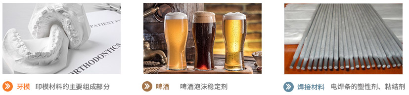 1% 30-50mpa.s 啤酒澄清、起泡 1% 10mpa.s以下 藥用、功能性食品 |