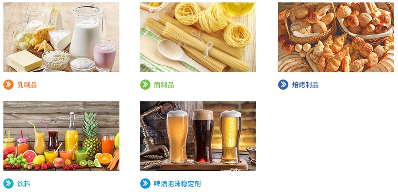 4、海藻酸丙二醇酯具有水合、抗老化、組織改良等特性,適用于生干面制品、生濕面制品、方便米面制品、冷凍米面制品、面包、糕點以及其他焙烤食品等產(chǎn)品中。