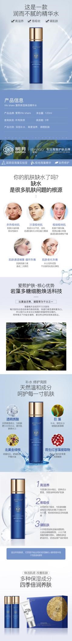 產(chǎn)品介紹:富含褐藻巨藻提取物,多重保濕成分,滋潤(rùn)保濕,凈化肌膚,促進(jìn)后續(xù)營(yíng)養(yǎng)吸收。含金縷梅提取物等成分鎮(zhèn)定肌膚,質(zhì)地清爽,親膚不黏膩。