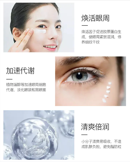 產(chǎn)品介紹:微振按摩有利于促進(jìn)快速吸收,舒緩眼周,含豐富海藻彈潤(rùn)精華,持潤(rùn)沁透肌膚,幫助撫平眼部肌膚,充盈彈潤(rùn),煥活眼周活力。